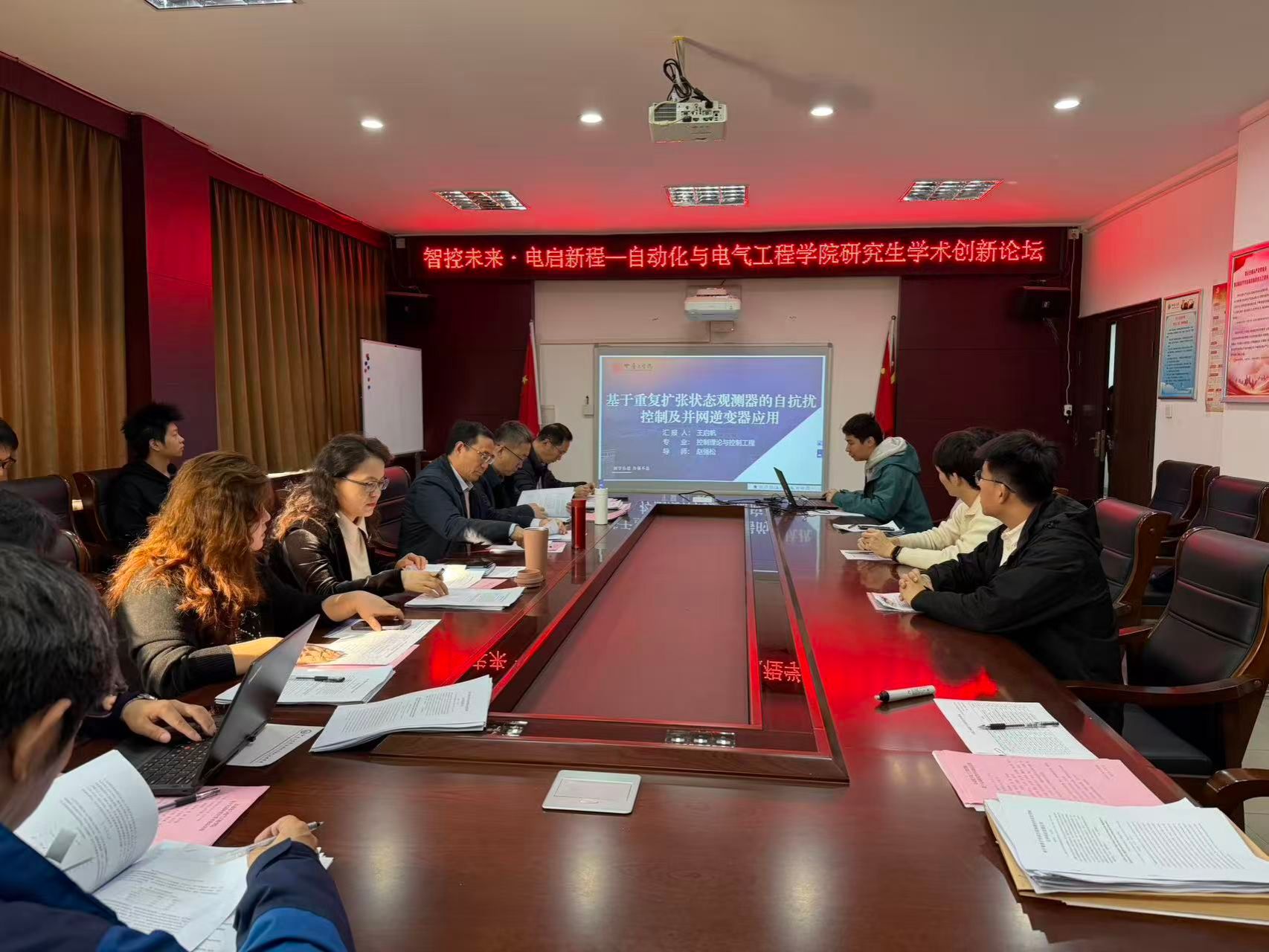 为拓展研究生学术视野,增强创新意识与科研能力,营造积极向上的学术氛围,11月5日,完美体育官网在10号楼218会议室举办“智控未来·电启新程——自动化与完美体育官方网站研究生学术创新论坛”。论坛邀请学术副校长张纪峰、党委书记张颖、执行院长朱永胜、党委副书记王媛媛、王瑷珲、巫付专组成评审专家,会议由柴旭朝老师主持。
