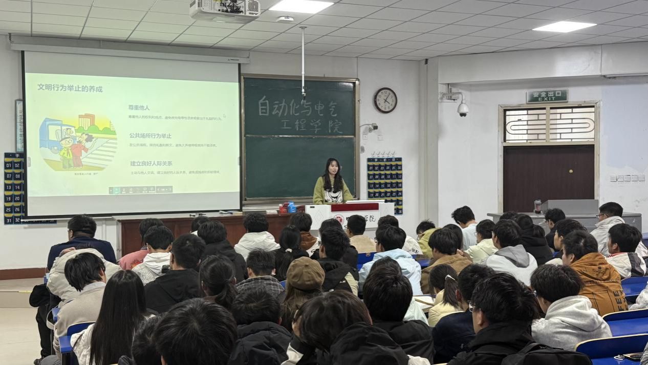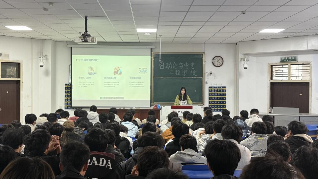 为引导2025级新生尽快适应大学学习生活节奏,树立积极健康的心理发展观念,涵养文明得体的行为习惯,2025年11月21日,自动化与完美体育官方网站面向25级新生成功举办了“启航·心成长”心理健康主题年级大会。本次大会围绕行为规范、礼仪修养、兴趣培养等多个与心理健康息息相关的维度展开,旨在帮助新生从入学伊始便建立起全面、积极的自我认知与成长框架,为未来四年的专业学习与个人发展奠定坚实的心理基础。