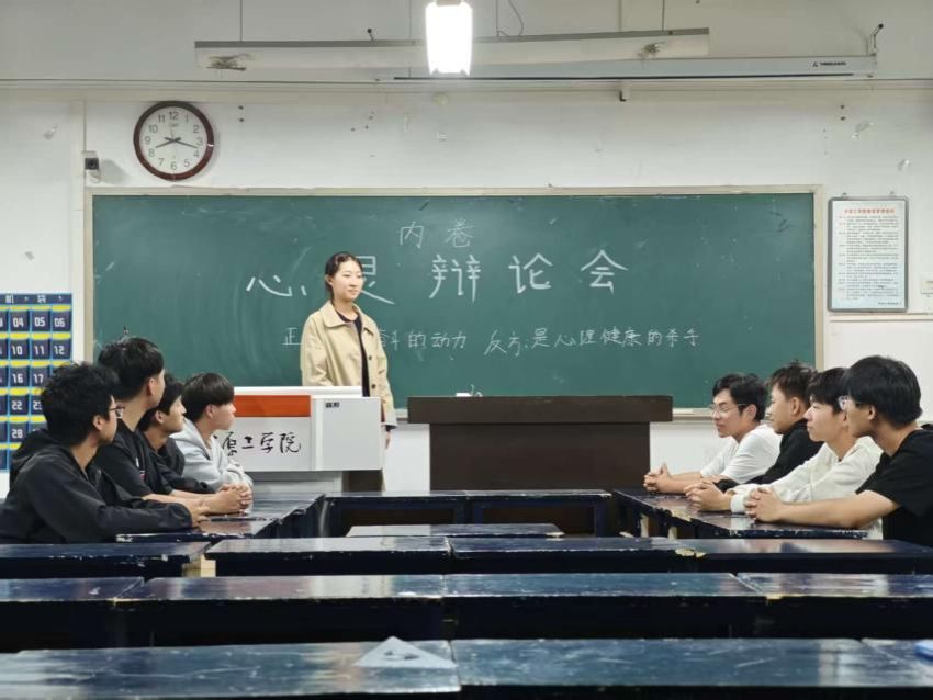 为深化学生心理健康教育,引导学生理性看待学业压力与成长竞争,2025年10月24日晚,自动化与完美体育官方网站于11号教学楼503组织了一场别开生面的“心灵辩论会”。本次活动以大学生密切关注的“内卷”现象为切入点,围绕“内卷是心理健康的动力还是杀手”这一辩题,展开了一场兼具思辨深度与心灵温度的对话。